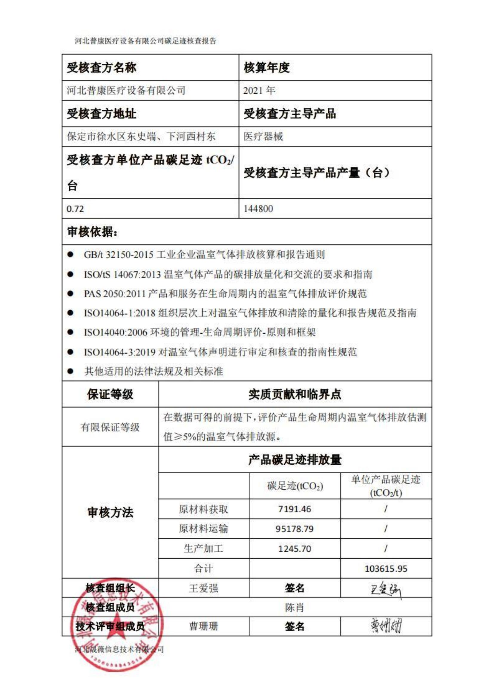 2021年產(chǎn)品碳足跡核查公示